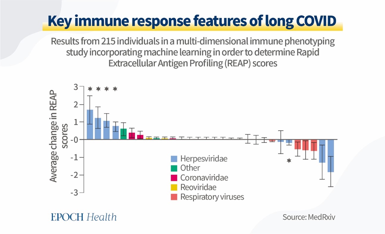 This means that the immune system is under a terrific amount of stress struggling with these symptoms, which some scientists speculated to be quite the precursor to the reactivation of various hibernating viruses. In a cross-sectional study, 215 participants were analyzed for key features that distinguished long COVID.
