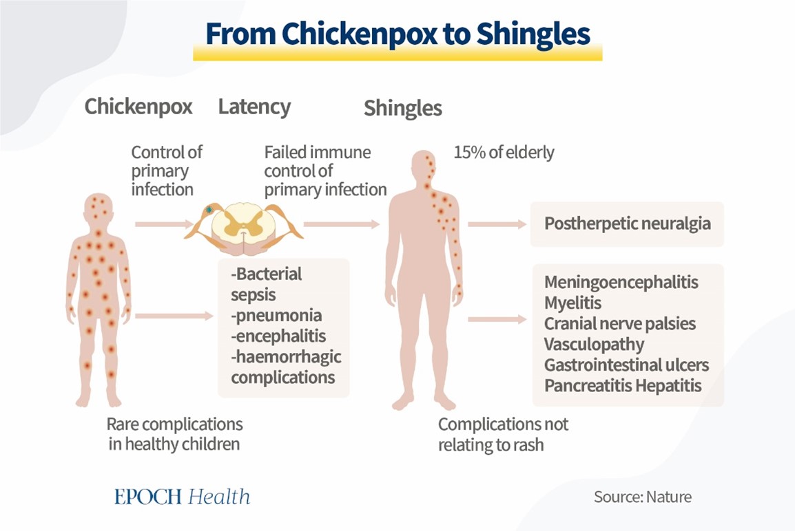Let’s take VZV, or chickenpox, as an example. In the usual sense, everybody gets chickenpox in their life. This usually happens early on and is quite itchy for the patient but doesn’t have a lot of other severe complications.