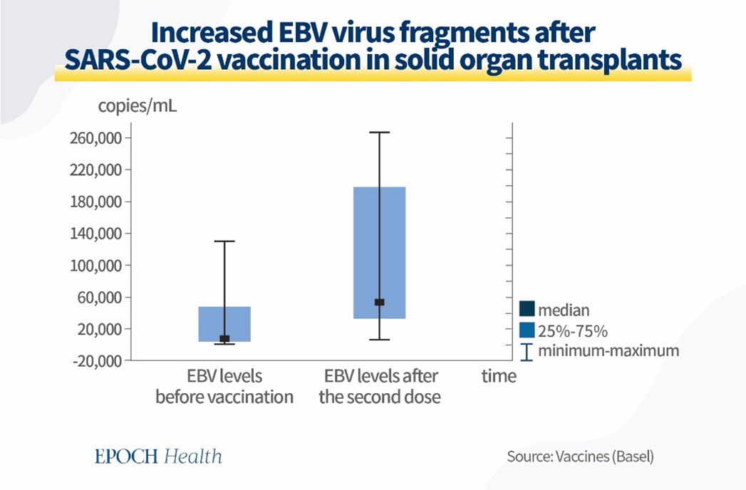 One study looked at patients with an organ transplant history and analyzed their EBV fragment levels before and after receiving a full course of COVID-19 vaccination. They found that EBV levels in this category of patients were significantly higher after vaccination.